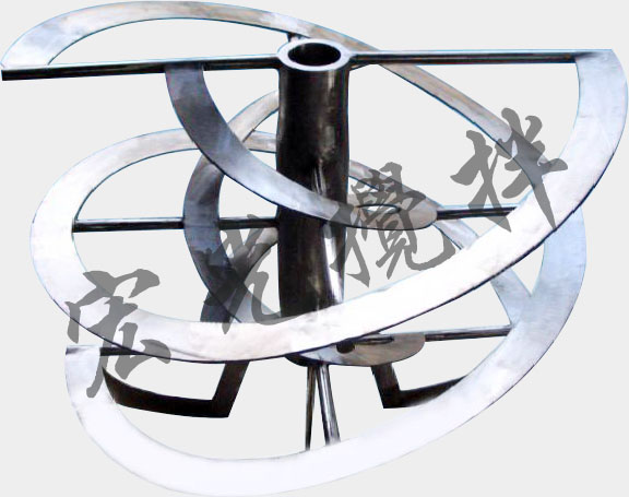 螺帶的外徑與螺距相等,用于攪拌高粘度液體(200~500Pa·s)及擬塑性流體,通常在層流狀態下操作。
